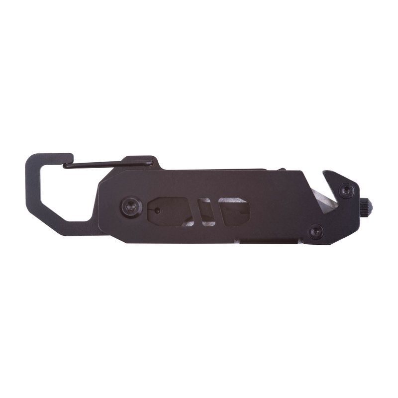 Multifunkčný nástroj s hliníkovým puzdrom a nástrojmi z nehrdzavejúcej ocele. 12 kusov. Obsahuje: kľúč 3-8 mm, krížový a plochý skrutkovač, karabínu, kladivo na rozbíjanie skla, otvárač fliaš a rezač bezpečnostných pásov.