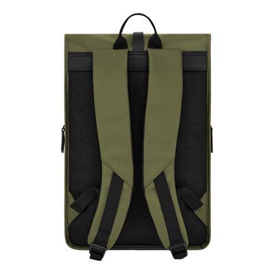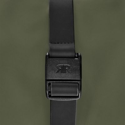 Designed with form as much as function in mind, this casual-inspired rolled-top backpack is offered in a refined khaki green, contrasted with elegant black matte details. A subtle utilitarian aesthetic is expressed through its rolled-top closing construction, perfectly finished with an integrated magnetic closure engraved with the RR signature. The silhouette is light and roamy, ideal for daily movement. Two flat zipped pockets to the front provide practical organization, while the interior features a dedicated laptop compartment for everyday essentials. A padded back panel and padded shoulder straps ensure lasting comfort in use. Inside, a spacious roamy interior reveals a refined monogram lining, completed with a zipped inner pocket for secure storage. It is the perfect accessory for someone with a minimalist yet casual and modern aesthetic.