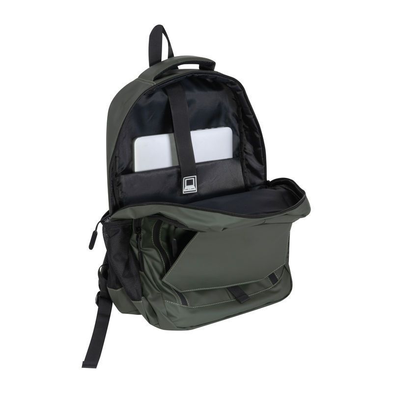 Vysoko kvalitný batoh vyrobený Softtouch PU s dvoma veľkými hlavnými priehradkami, dvoma bočnými vreckami, vodotesnými zipsmi, polstrovanými ramennými popruhmi, priehradkou na notebook a predným vreckom.