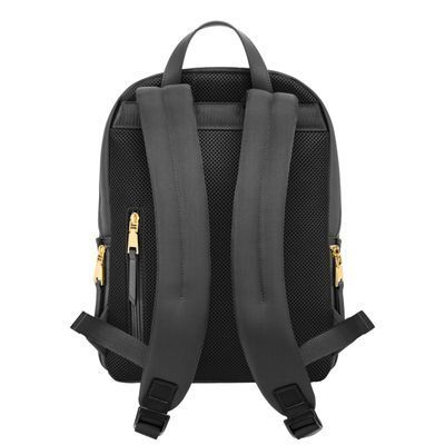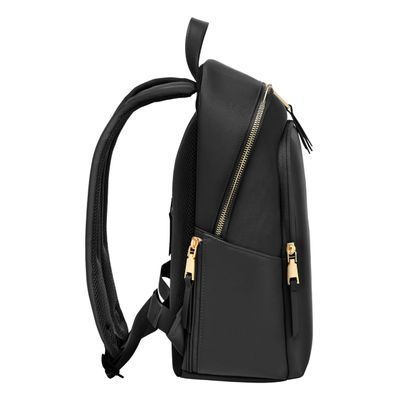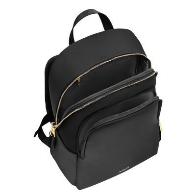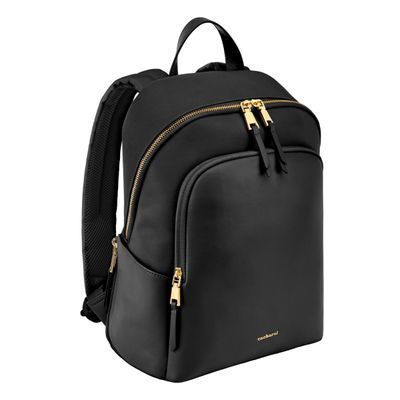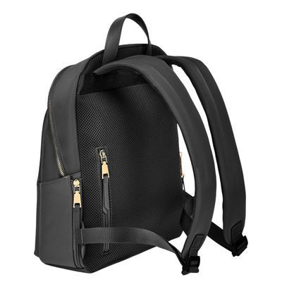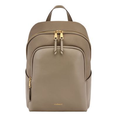 The Olympe Backpack is a minimalist piece elevated by a refined softness, crafted in contrasting nylon and high-quality vegan leather kept tone-on-tone for a clean, understated aesthetic. Its luxurious gold signature and accents stand out against the sleek silhouette, while smart functionality comes through a front zipped compartment, a spacious main section with multiple pockets—including a secure zipped one—and two highly practical side pockets. Designed for comfortable daily use, it features a padded back panel with a discreet zipped compartment for valuables, along with padded shoulder straps. Available in a beautiful palette of black, beige, and grey.