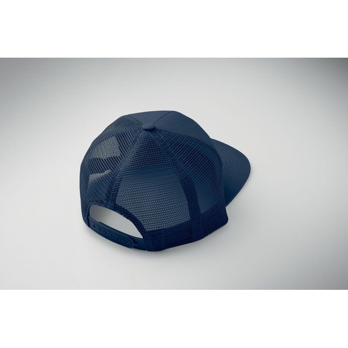 Sedmipanelová kšiltovka s plochým kšiltem z bavlněného 235g kepru s polyesterovou síťovinou na zadní straně a plastovým zapínáním.