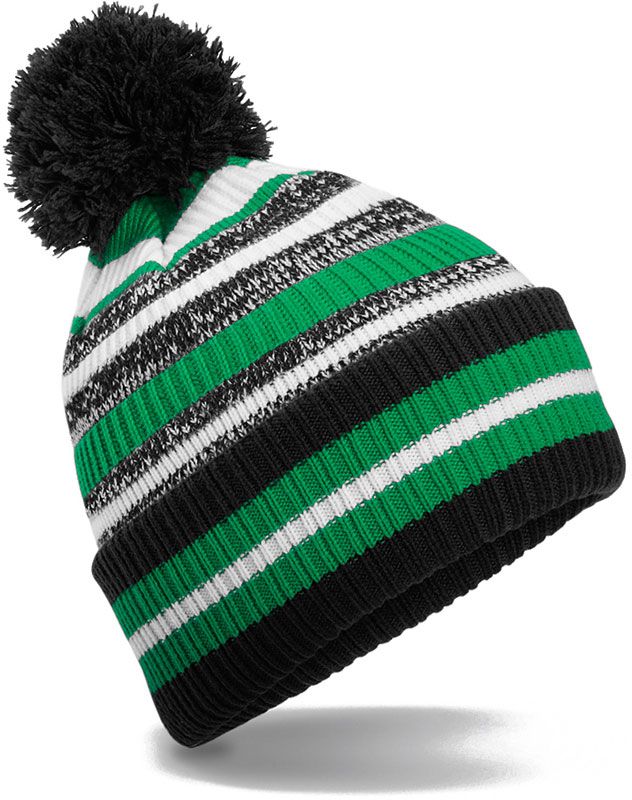 Jednobarevná bambule, široký lem, pruhovaný design, dvojitě pletená, měkká a teplá, štítek TearAway, ruční praní, nelze sušit v sušičce, nelze chemicky čistit