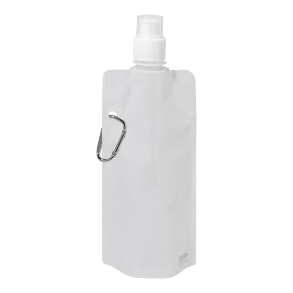 Skladacia športová fľaša z RPET s viečkom na pitie a hliníkovou karabínou, 500 ml. Bez BPA. Nevhodná pre sýtené nápoje.