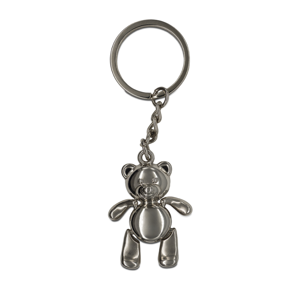 Kovový přívěsek ve tvaru medvídka s pohyblivými tlapkami. Baleno v černé dárkové krabičce.