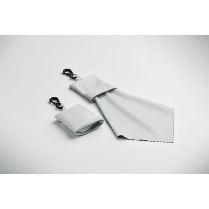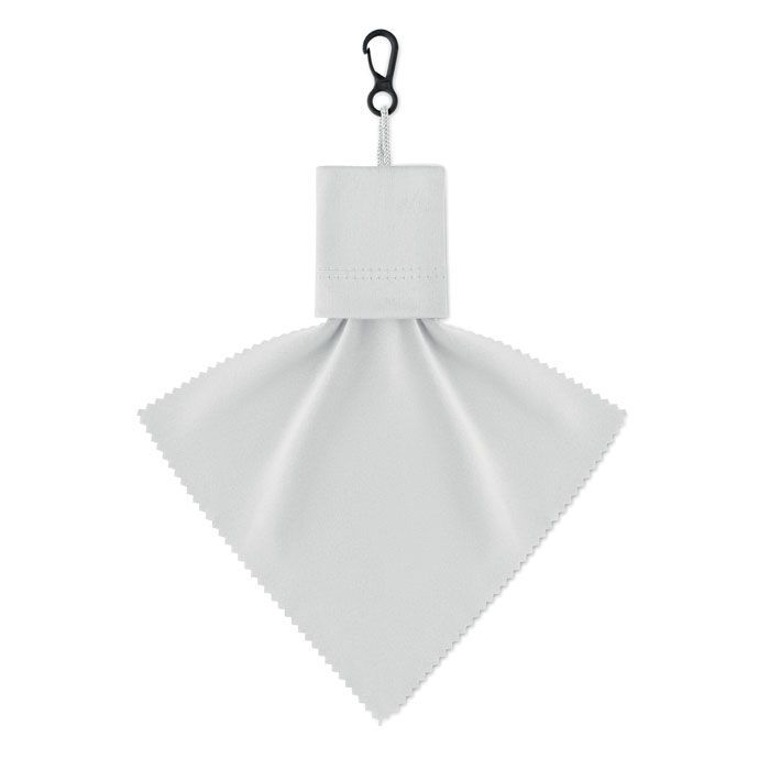 Čisticí hadřík z RPET s pouzdrem a PP plastovým háčkem.