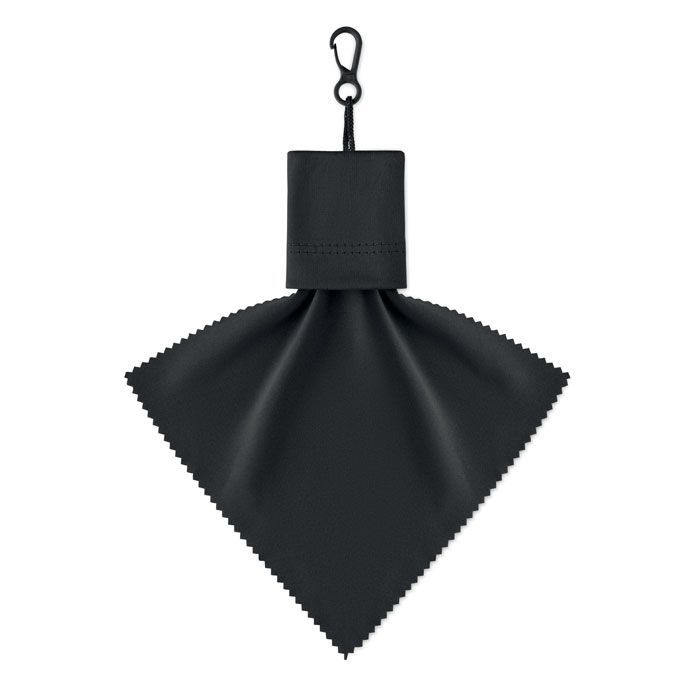 Čisticí hadřík z RPET s pouzdrem a PP plastovým háčkem.