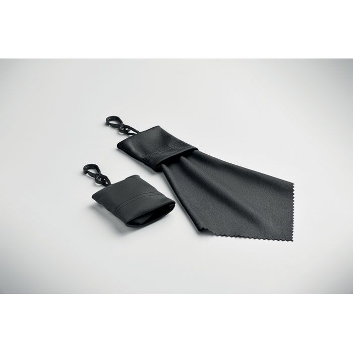 Čisticí hadřík z RPET s pouzdrem a PP plastovým háčkem.