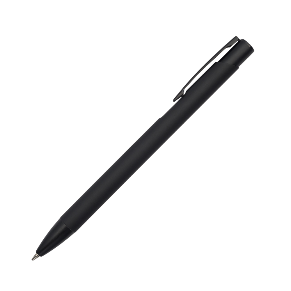 Kuličkové pero z recyklovaného hliníku s matným povrchem příjemným na dotek a praktickým klikacím mechanismem. Modrá náplň.