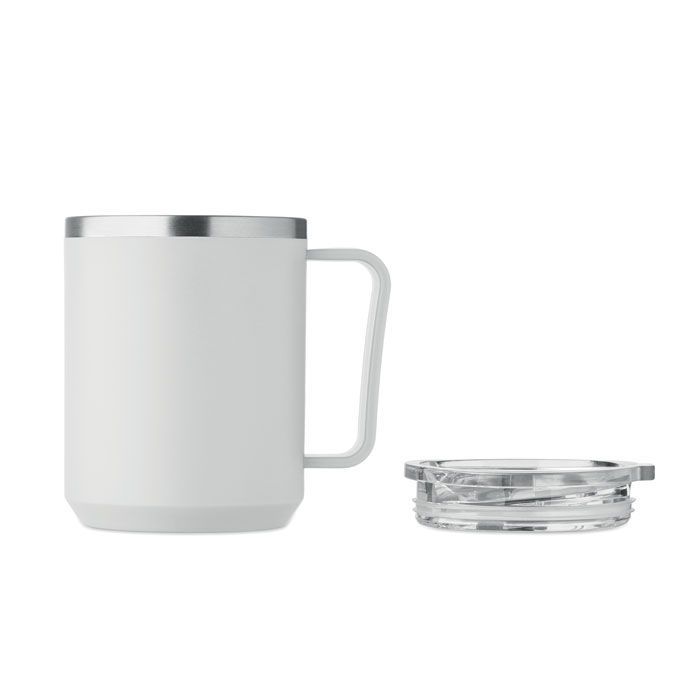 Termohrnek s vnitřkem z 90 % recyklované nerezové oceli a 10 % nerezové oceli a vnějškem z recyklovaného PP. Průhledné posuvné víčko z AS. Objem 400 ml.