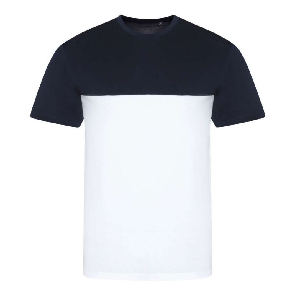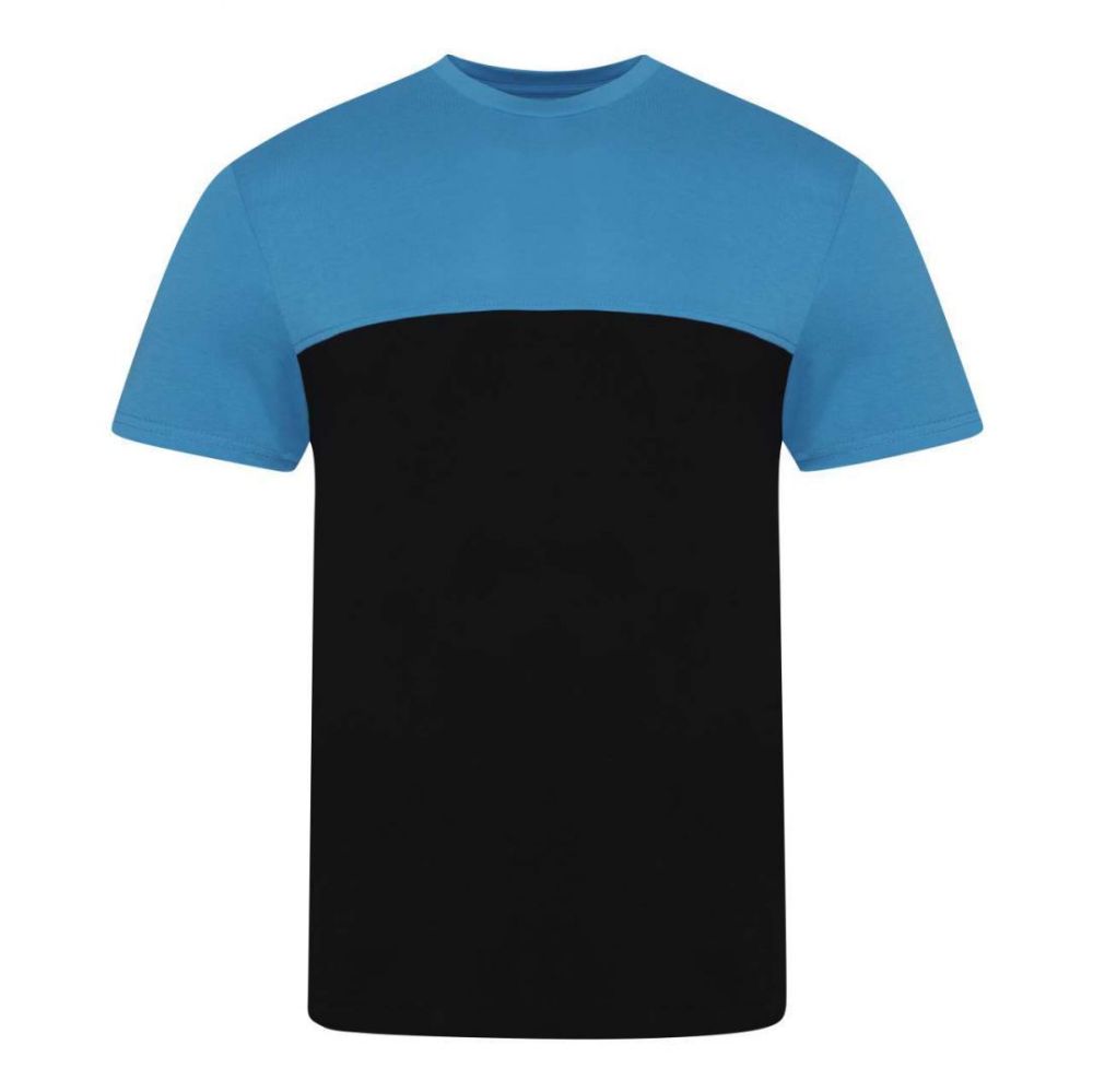 Modern fit with contrast panelling;Short sleeves;Size label only. for easy rebranding - colour coded black for Unisex;Combed ringspun cotton for ultra comfort;Surface excellent for print or embroidery;Taped neck;Ribbed crew neck style;Twin needle stitching detail on sleeve and bottom hem;Side seams;Wash dark colours separately;