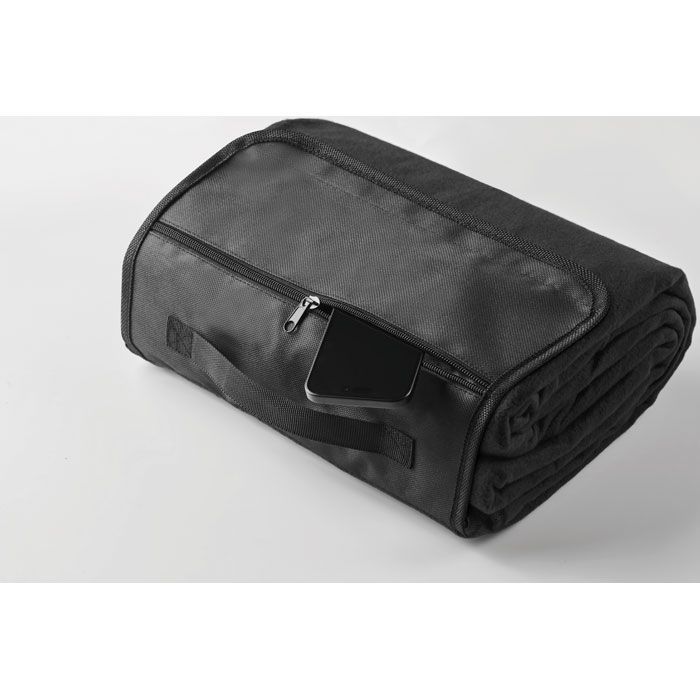 Skládací pikniková deka ze 150g RPETu (68 % recyklovaný polyester/32 % běžný polyester) z polar fleecu s voděodolnou zadní stranou z PEVA. Přední klopa s kapsou na zip a rukojetí.
