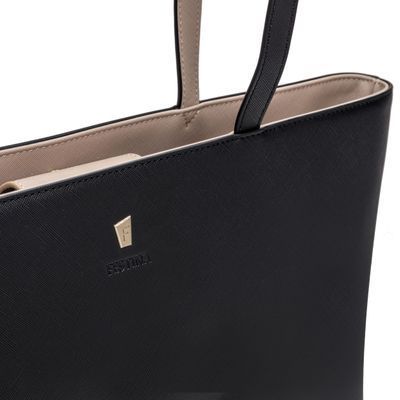 Festina's celebrated "Mademoiselle" line is completed this season with a new offer of lady bags. This large tote bag is made of beautifully textured saffiano vegan leather (PU). Each detail is delicately crafted,like the iconic signature F gold plate, present across the collection and underlined with a beautifully embossed FESTINA logo. Beautifully designed, the product features colorful, contrasted and highly practical interiors, roamy interiors. This specific bag has a magnetic button closing, and a very large inside zipped compartment, perfect for a laptop and other valuables. It also features other another flat pocket & zipped flat pocket, perfect to organise document and other essentials. This Black version has a contrasted beige interior, matching the eponymous wallet.