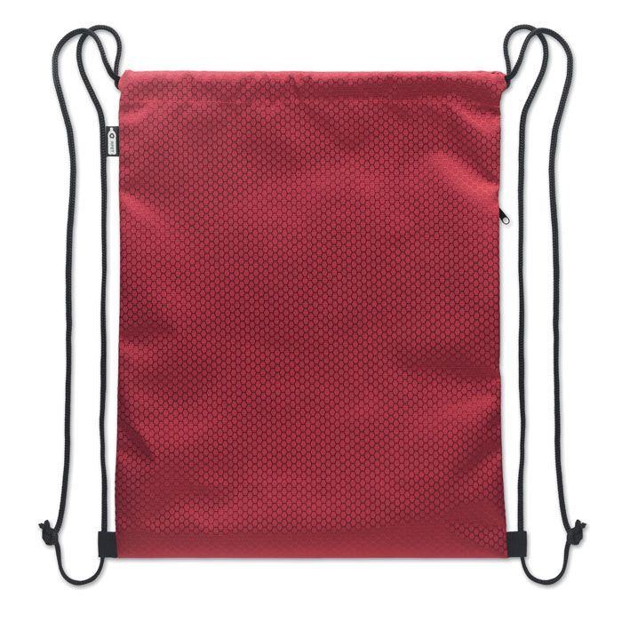 Stahovací batoh z polyesteru RPET 420D s vertikální boční kapsou na zip a podšívkou z materiálu RPET 210D. Pevné šňůrky, objem 4,5 l, maximální nosnost 5 kg.