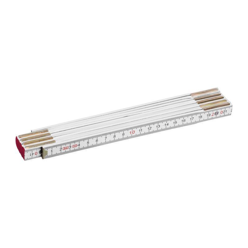 Drevené skladacie pravítko s integrovaným uhlomerom, centimetrová stupnica, 23,7 cm v zloženom stave, celková dĺžka 2 m. Odolné, presné a ideálne na remeslá, dielne alebo domáce použitie.
