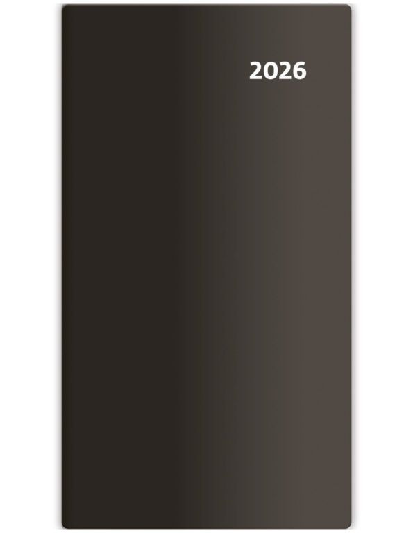 Tradičné celoplastové prevedenie vreckových diárov. Farebná paleta zahrňuje tri klasické odtiene.
