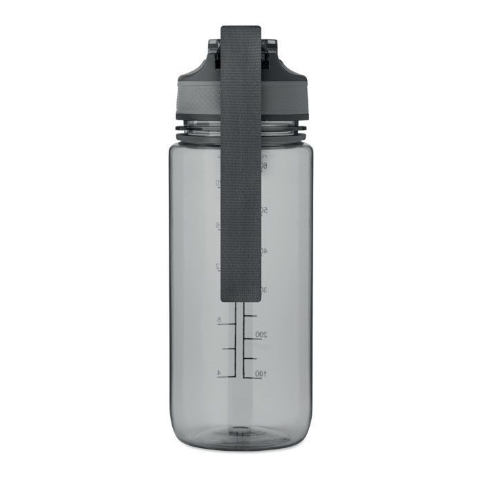 Motivační sportovní láhev na vodu z RPET s integrovaným brčkem, měkkým silikonovým náustkem, víčkem otevíratelným jednou rukou a bezpečnostním zámkem. Poutko z RPET saténu. Objem 700 ml. Neteče.