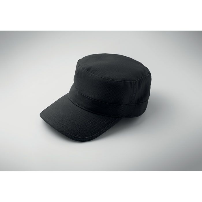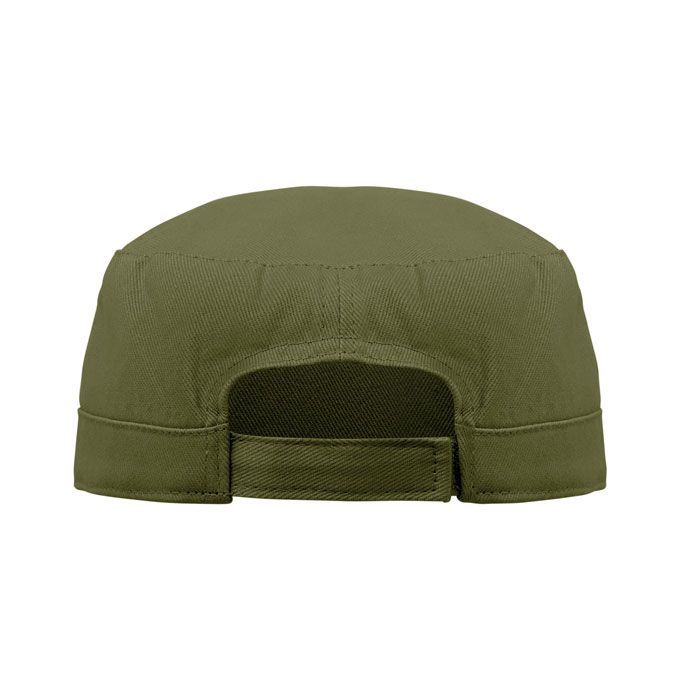 Vojenská čepice z kartáčované 260g bavlny, s polyesterovým potním páskem a nastavitelným zapínáním na suchý zip.