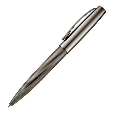 The Cerruti 1881 gunmetal ballpoint pen embodies luxurious minimalism through a smooth cap engraved with the new two-row Cerruti 1881 logo, contrasted by a pinstripe-engraved lower barrel. Its deep, elegant gunmetal finish brings depth and modern sophistication to a clean, architectural silhouette.