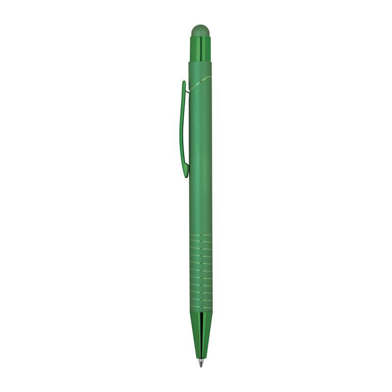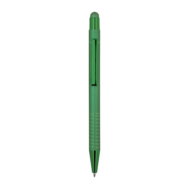 Guľôčkové pero s integrovaným stylusom pre smartfóny a tablety. Lesklý farebný zrkadlový povrch, modrá náplň