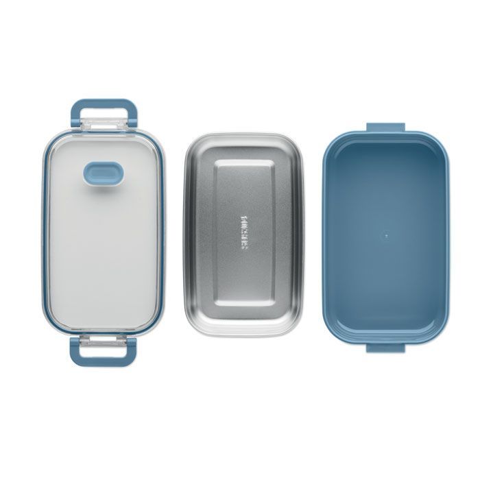 Obědový box z PP s přídavným zásobníkem z recykl. nerez. oceli. Vzduchotěsné AS víčko, které udrží potraviny čerstvé a bezpečné zavřené. Objem 750ml bez zásobníku a 650ml se zásobníkem.