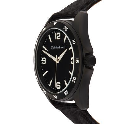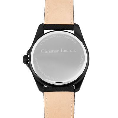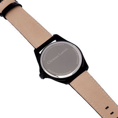 Introducing the "Caprio" watch by Christian Lacroix, a modern and on-trend timepiece designed for those with a discerning taste. This version features a special fabric and genuine leather bracelet, offering a unique and luxurious touch. The all-black design, coupled with silver detailing on the dial, exudes contemporary sophistication. With the same brand's commitment to quality, the "Caprio" watch is a perfect fusion of style and innovation. Elevate your wristwear with this distinctive and modern timepiece from Christian Lacroix.