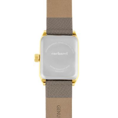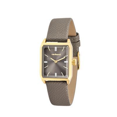 The Séraphine watch features an elegant Saffiano-finished bracelet and a perfectly proportioned angular case that feels refined and delicate without excess. The sunray-finished dial is accented with a small crystal detail, adding a subtle touch of light. Available in taupe, black, navy or light grey, it brings a timeless, graceful presence to any look.