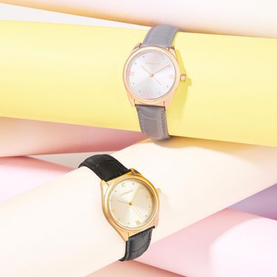 The “Violette” watch in grey and rosegold is the ultimate statement of elegance. Featuring a crocco-printed leather bracelet, a rosegold case, and refined rosegold metal accents, this watch exudes timeless luxury. The sunray dial catches the light with every movement, elevating its refined design. This classic timepiece pairs effortlessly with other accessories from the collection, adding a soft, sophisticated touch to any look.