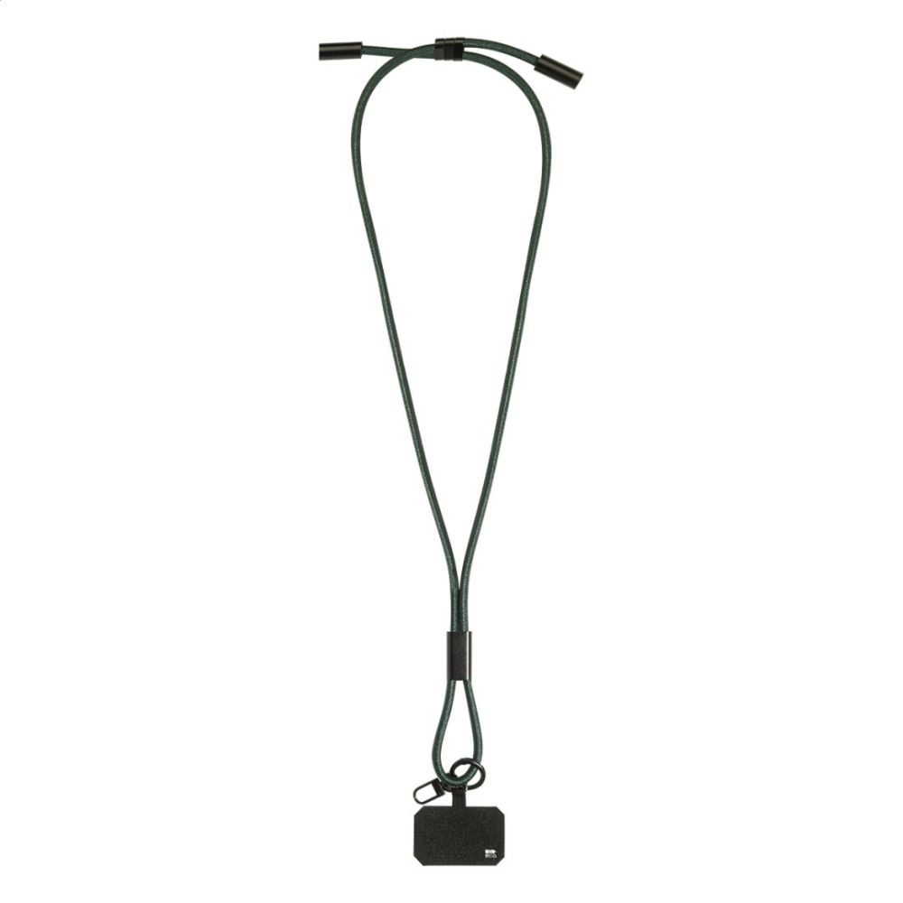 Šnúrka s držiakom na mobil z RPET s vložkou pre telefón, karabínou a integrovaným nabíjacím káblom USB-C na USB-C so skrytými konektormi. Podporuje rýchle nabíjanie a prenos dát PD 60W.