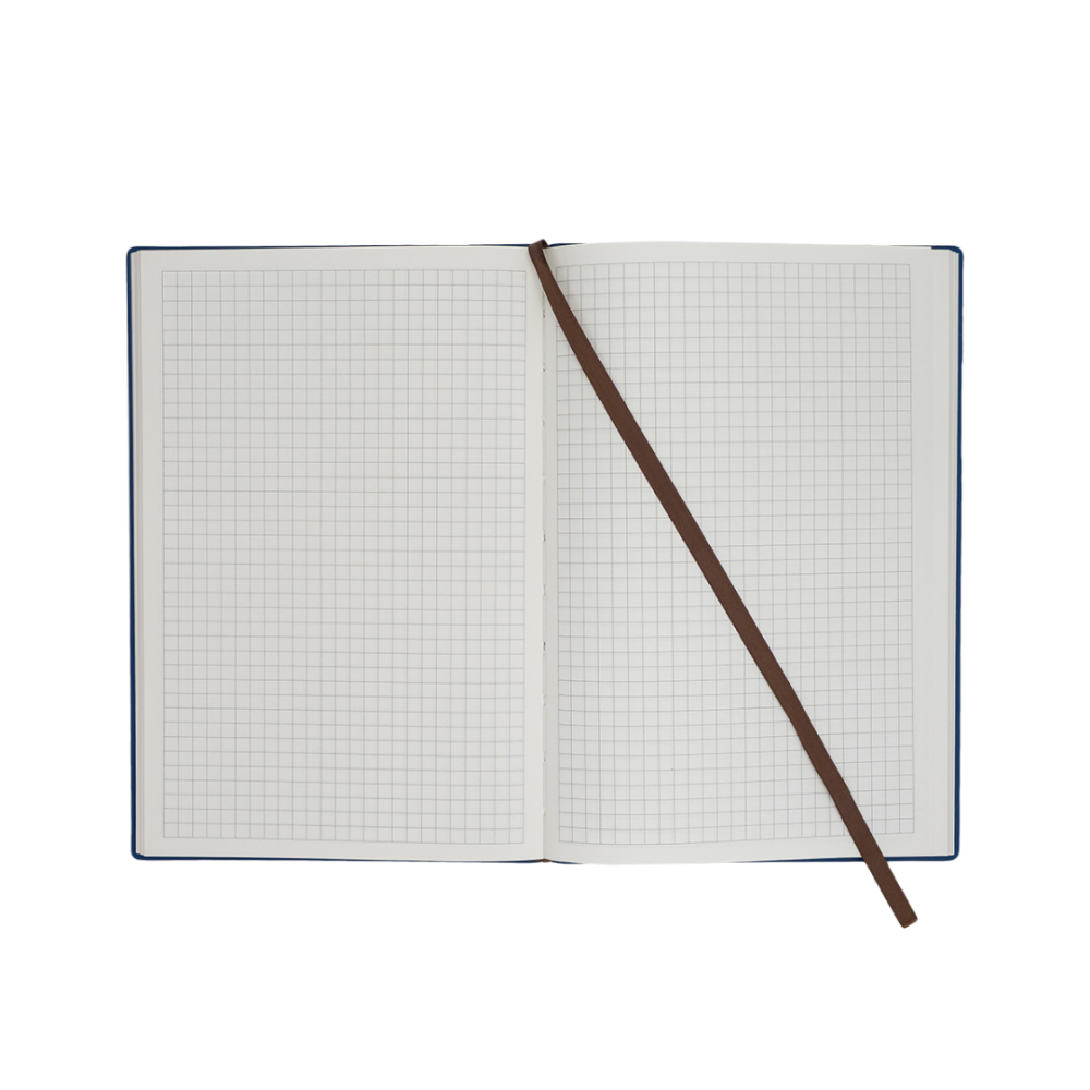 Zápisník v pevné vazbě se stuhou na založení stránky. 120 čtverečkovaných stran (70 g/m2).