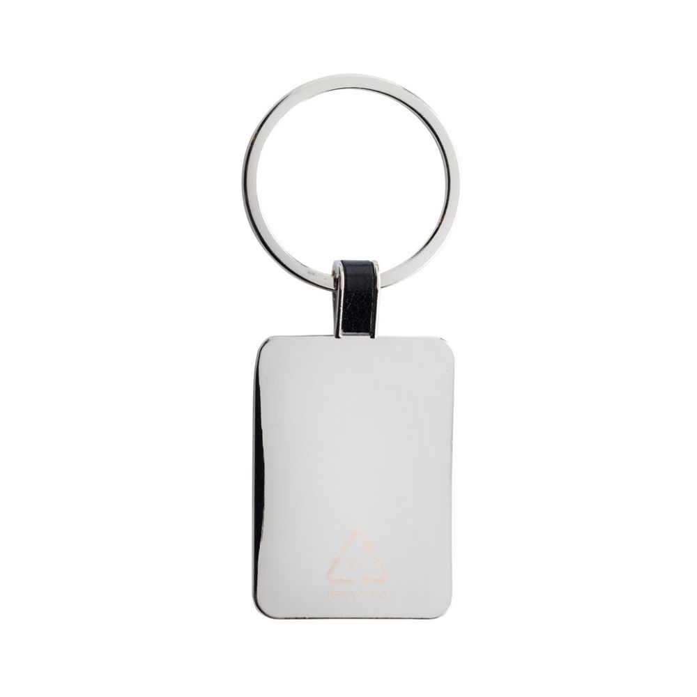 Kľúčenka v hranatom tvare vyrobená z RCS recyklovanej zliatiny zinku. RCS certifikácia zaisťuje garanciu použitia recyklovaného materiálu vďaka transparentnému prehľadu nad dodávateľským reťazcom. Celkový podiel recyklátu podľa váhy produktu: 84%. Balené v papierovom obale.