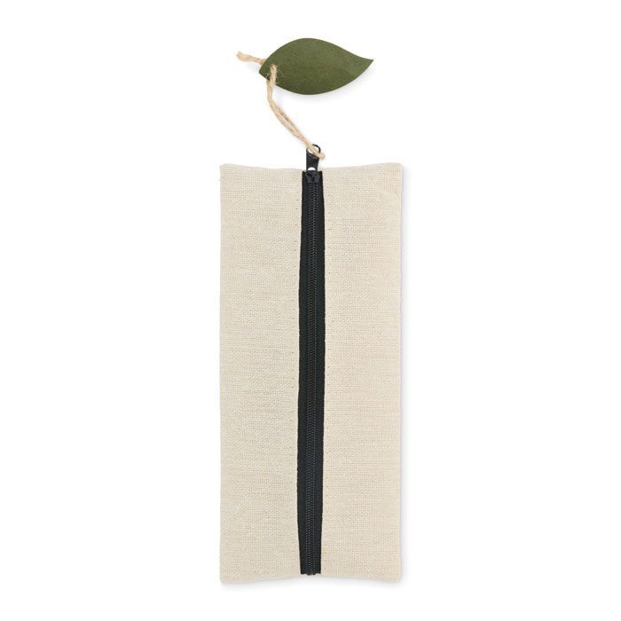Sada psacích potřeb v jutovém a bavlněném pouzdře. Obsahuje dřevěné 15cm pravítko, dřevěnou tužku, propisku s papírovým těle, gumu a dřevěné ořezávátko. Přírodní vzhled a opakovaně použitelné pouzdro.