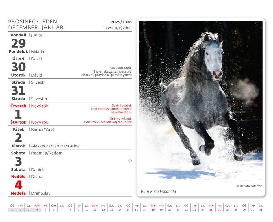 Kalendárium: české/slovenské týždenné riadkové