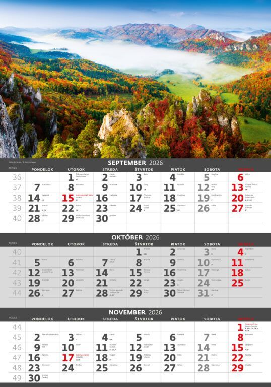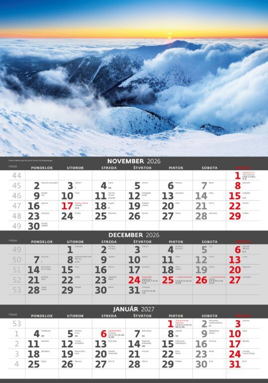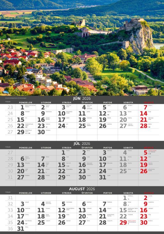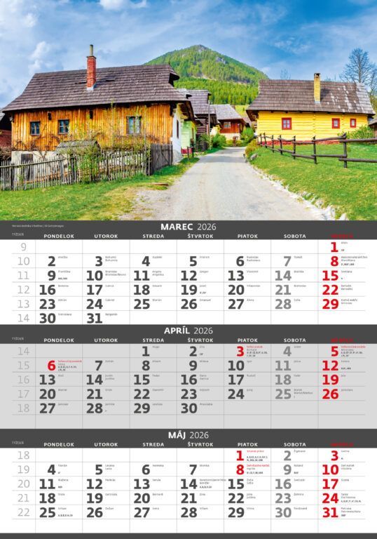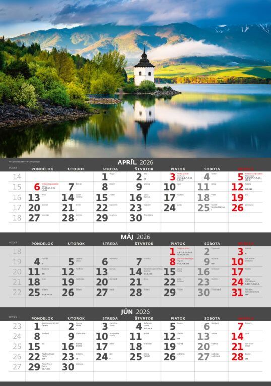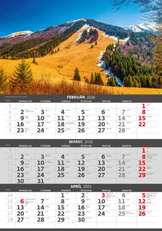 Kalendárium: slovenské trojmesačné so sviatkami európskych štátov (CZ / SK / A / B / D / F / H / CH / I / PL / RUS / UKR)