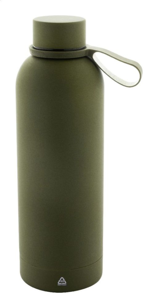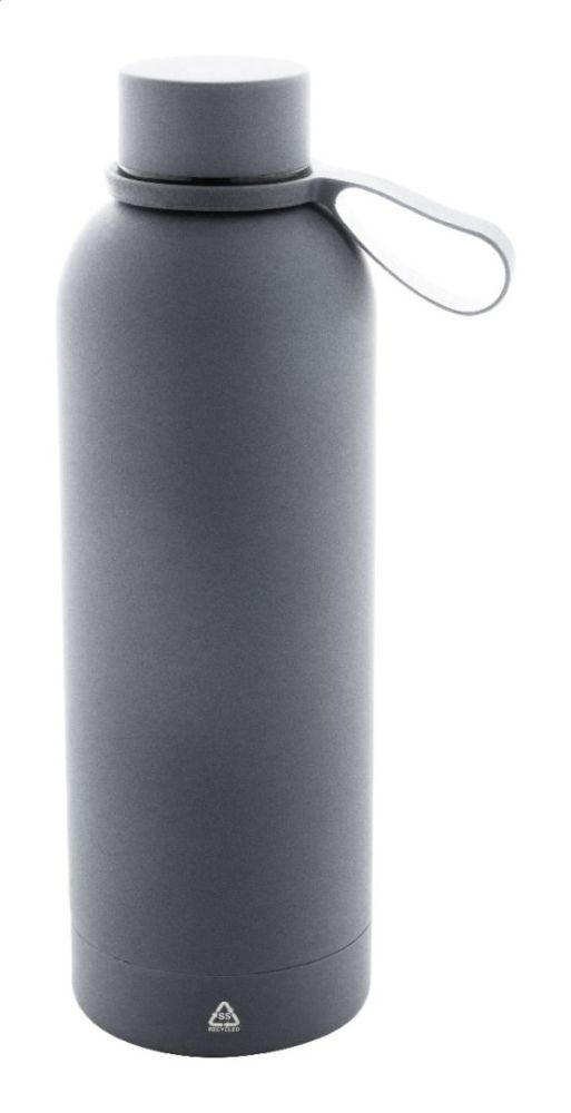 Dvojstenná vákuová fľaša z recyklovanej nerezovej ocele s pogumovanou úpravou a silikónovou rukoväťou, 500 ml.