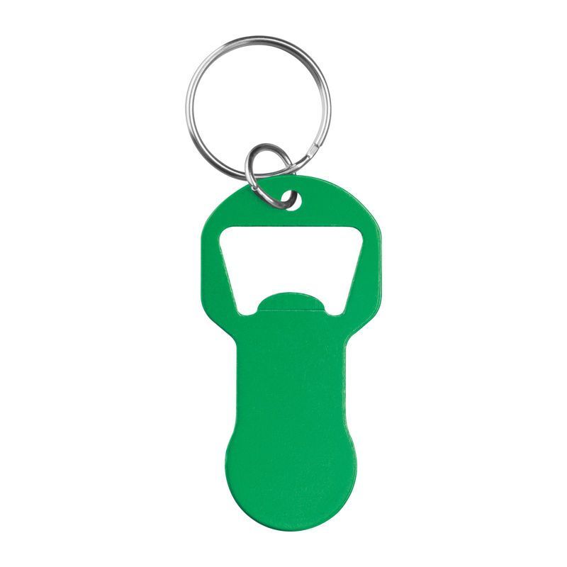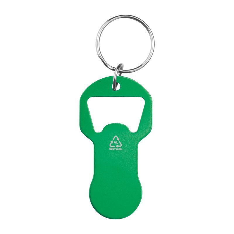 Kľúčenka z recyklovaného hliníka s integrovaným otváračom na fľaše a žetónom do nákupného košíka. Ľahká, praktická a ideálna na každodenné použitie.