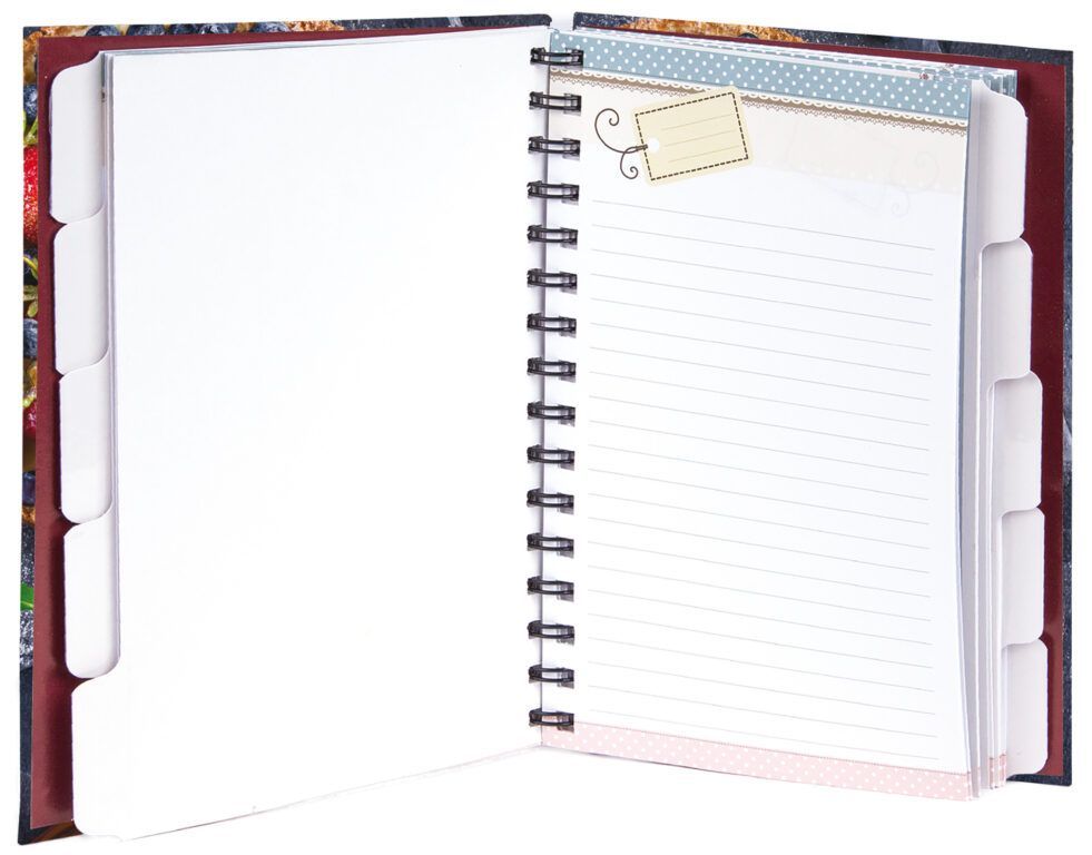 Každých 8 listov je rozdelených papierovým rozdeľovníkom, ktorý je možné si popísať druhom receptu. Kniha obsahuje celkom 10 rozdeľovníkov.