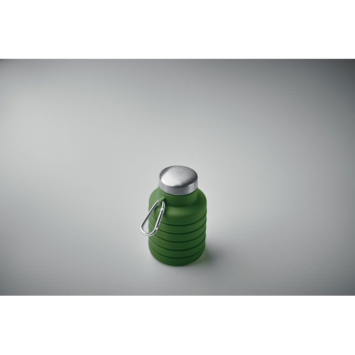 Skládací silikonová láhev s víčkem z nerezové oceli a hliníkovou karabinou. Karabina není určena pro horolezectví (neprofesionální použití). Objem: 500 ml.