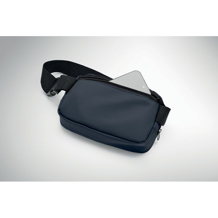 Ledvinka nebo crossbody taštička z měkkého PU s podšívkou z 210D RPET polyesteru. Jedna hlavní kapsa na zip, jedna zadní kapsa na zip a vnitřní síťovaná přihrádka.