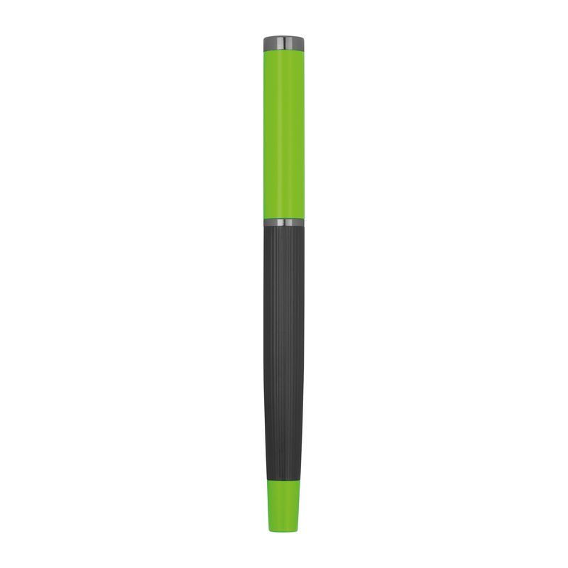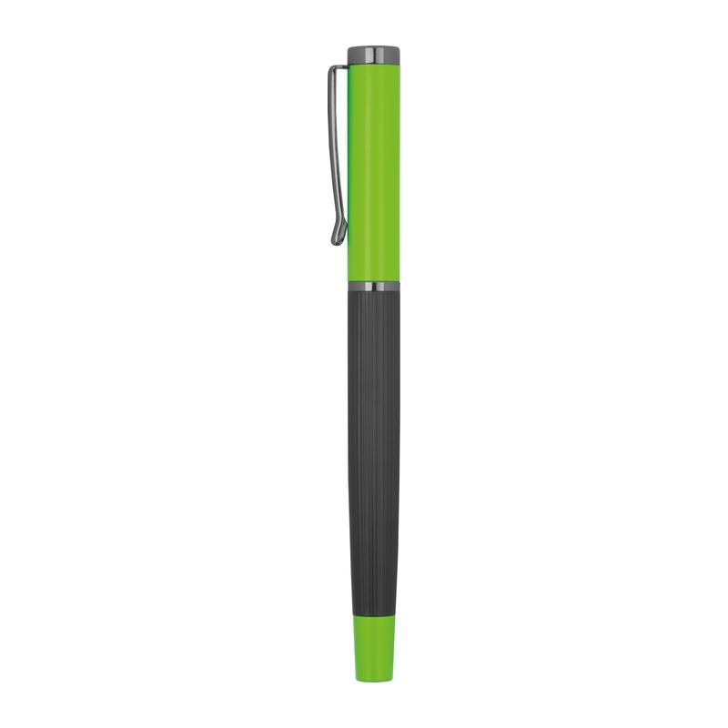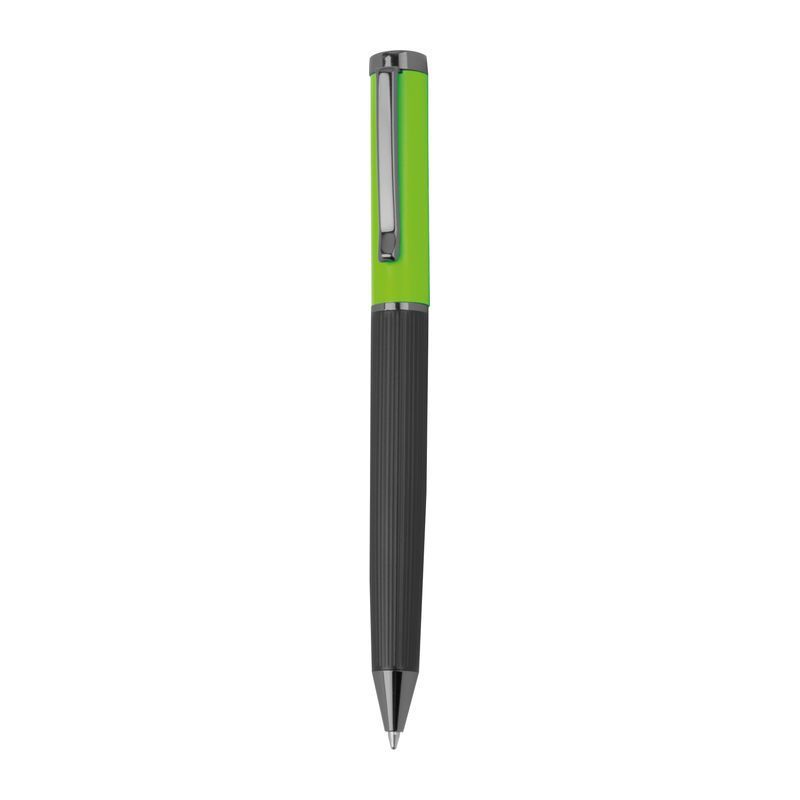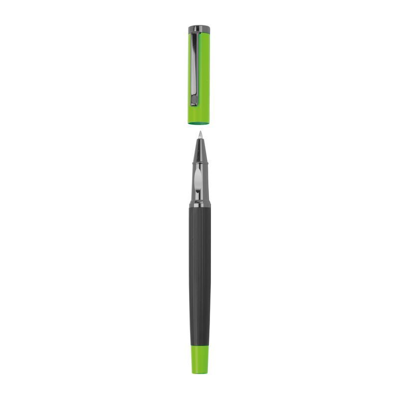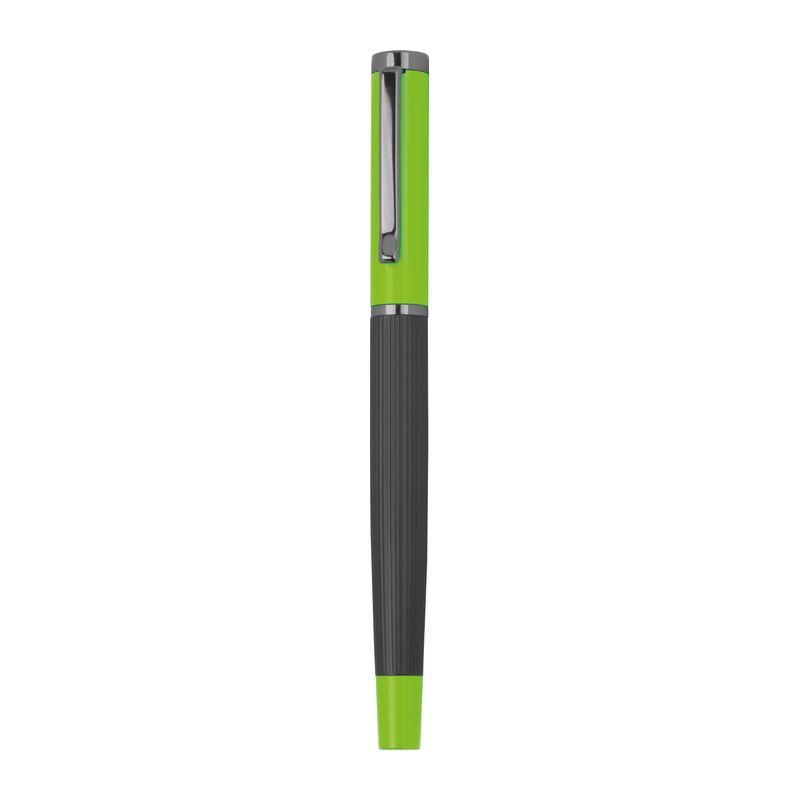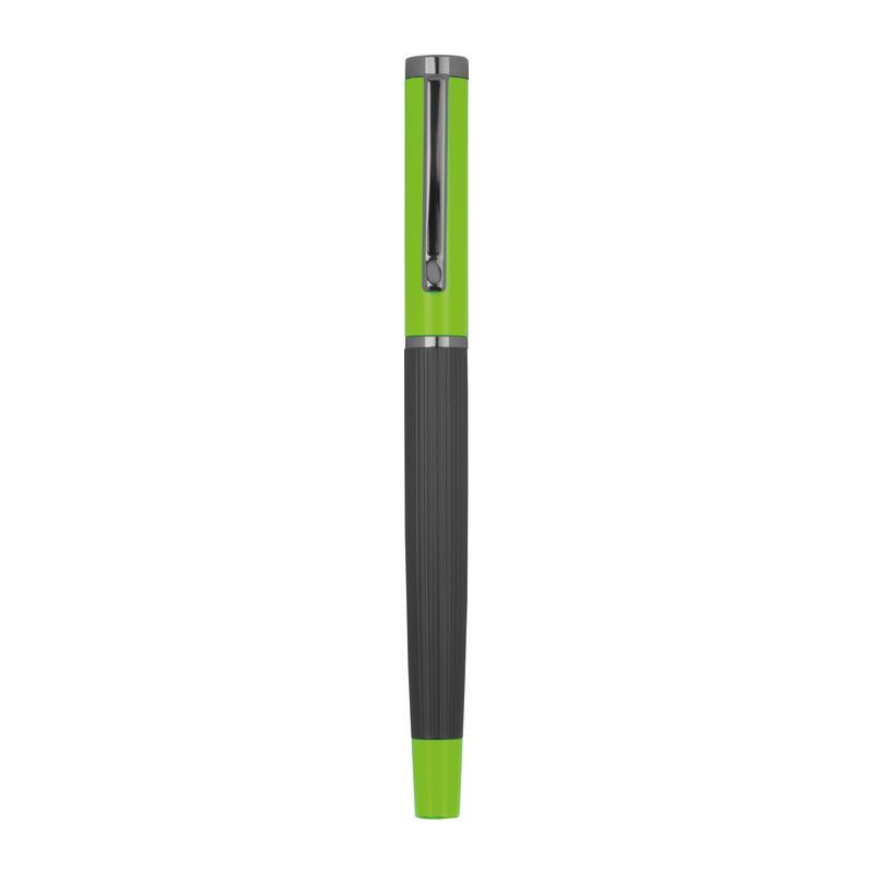 Kovová písacia súprava s modrou náplňou, pozostávajúca z guľôčkového pera (dĺžka písania 800 m) a roller pera (dĺžka písania 500 m) v farebne zladenom sklápacom puzdre