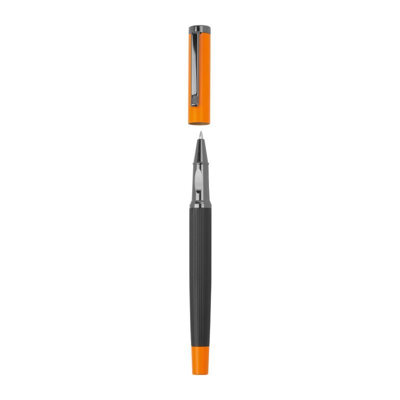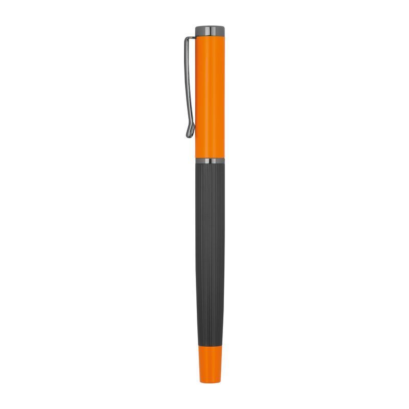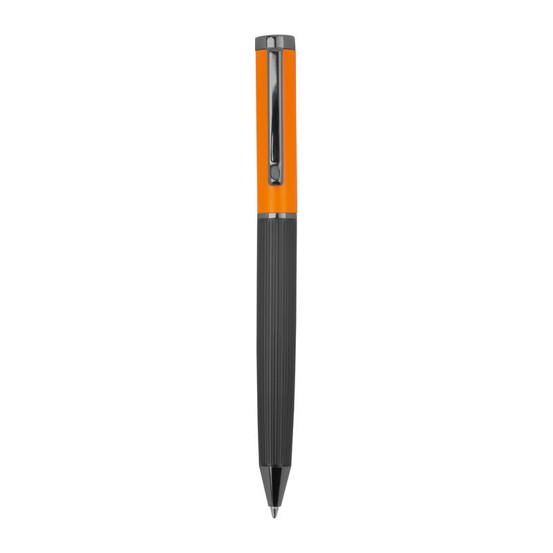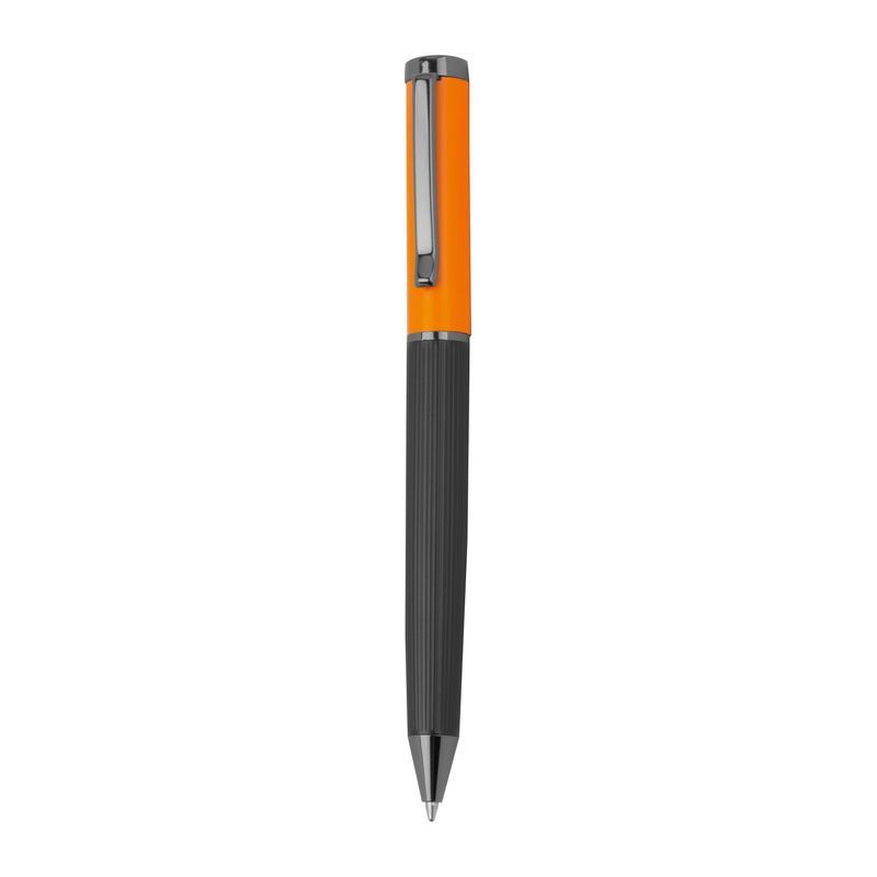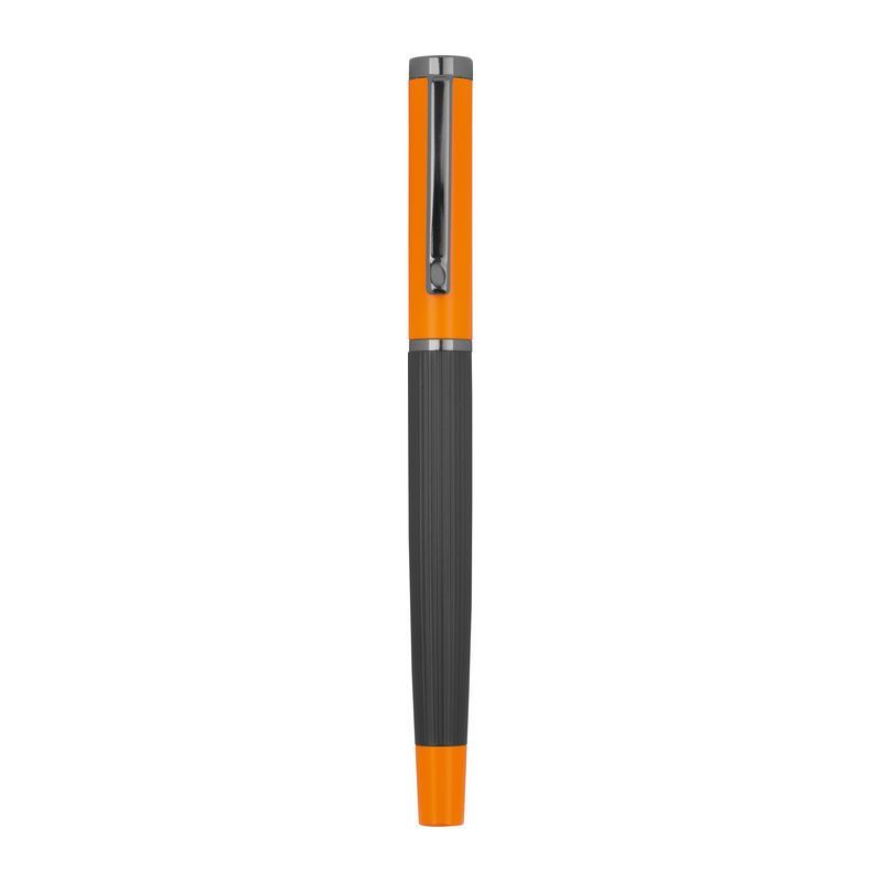 Kovová písacia súprava s modrou náplňou, pozostávajúca z guľôčkového pera (dĺžka písania 800 m) a roller pera (dĺžka písania 500 m) v farebne zladenom sklápacom puzdre