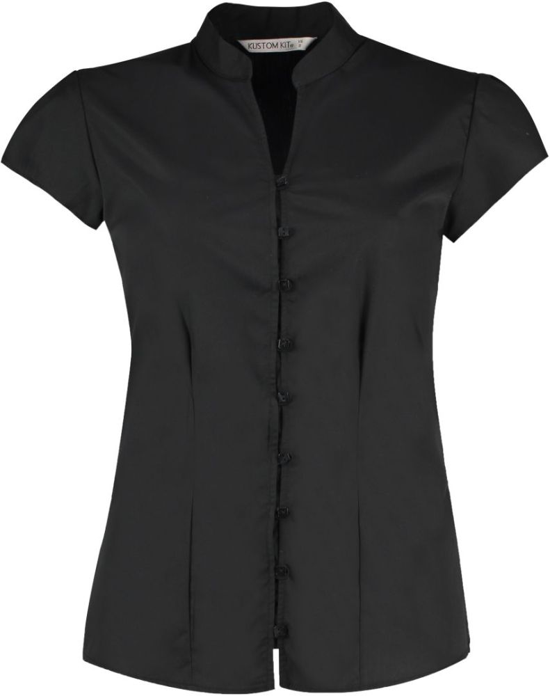 Kustom Kit | Popelínová halenka s mao límcem black 10_S