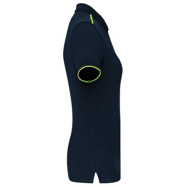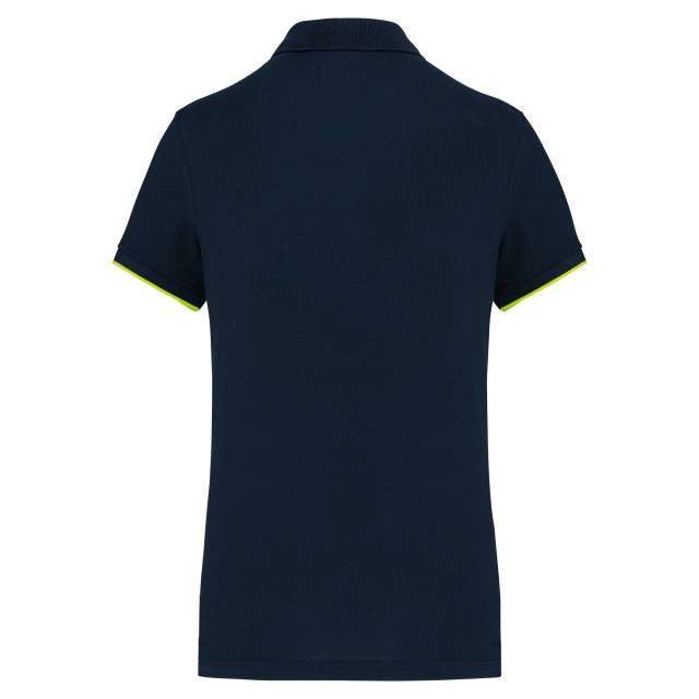 LADIES' SHORT-SLEEVED CONTRASTING DAYTODAY POLO SHIRT Navy/Fluorescent Yellow 2XL
