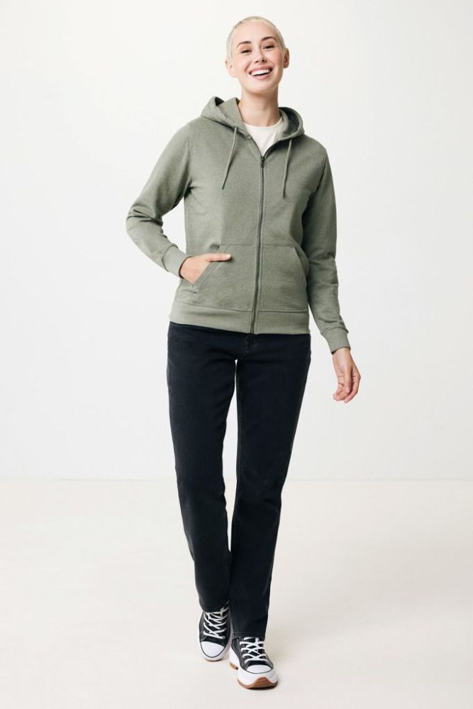 Mikina na zips s kapucňou Iqoniq Abisko z recykl. bavlny heather green