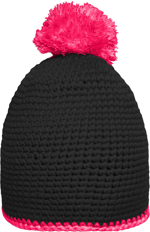 Myrtle Beach | Háčkovaná čepice s kontrastním lemem a bambulí black/pink onesize