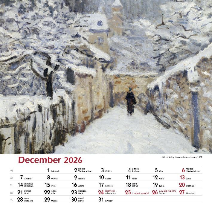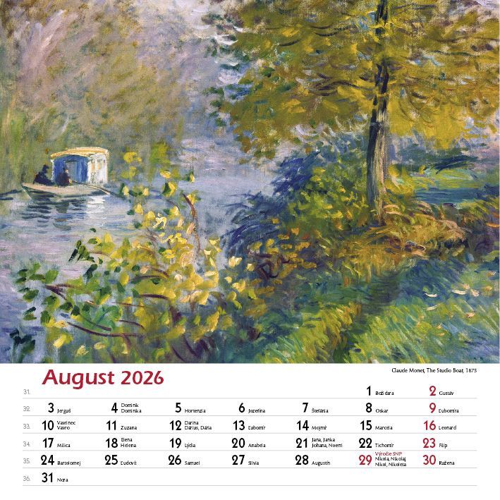 Zažite rok s najväčšími impresionistami. Objavte krásu impresionizmu každý mesiac s výberom diel najznámejších majstrov tohto umeleckého smeru. Svetlo, farby a emócie zachytené štetcami Clauda Moneta, Pierra-Augusta Renoira, Paula Gauguina a ďalších vás budú sprevádzať po celý rok. Ideálny darček pre milovníkov umenia.