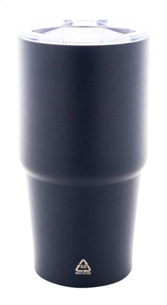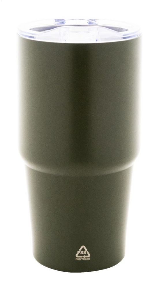 Dvojstenný vákuovo izolovaný termohrnček z recyklovanej nerezovej ocele s viečkom z polystyrénového plastu. 600 ml.