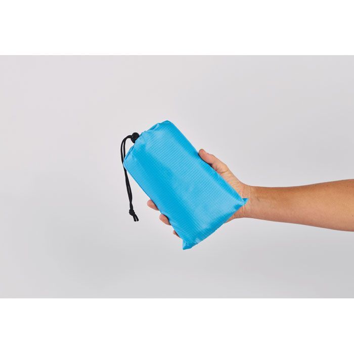 Lehká plážová deka z polyesteru 210T o rozměrech 200x210 cm. Čtyři skoby a stahovací pouzdro pro snadné přenášení.