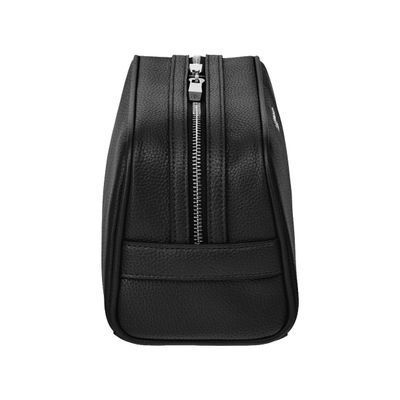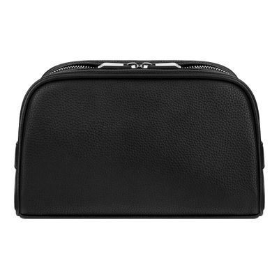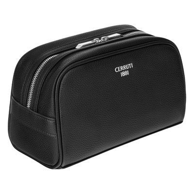 The Jefferson cosmetic bag in black with chrome trims offers a classical and elegant interpretation of functional travel. Compact yet surprisingly roamy, it is crafted from a carefully chosen matte-grained texture that enhances the purity of its minimal silhouette. Luxurious metal accents elevate the design, with the new Cerruti 1881 plate celebrating the updated logo and angular signature zipper pullers engraved with RR adding a refined finishing touch. The monogramed lining, inside zipped pocket, and impeccable craftsmanship make this a timeless and beautifully balanced accessory.