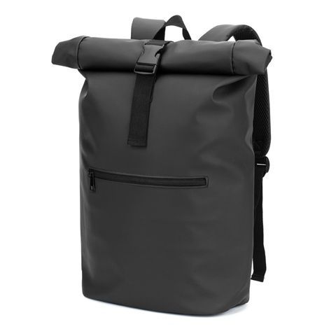 PORTLAND. PU batoh s rolovacím vrchom a vreckom na 16" notebook Čierna