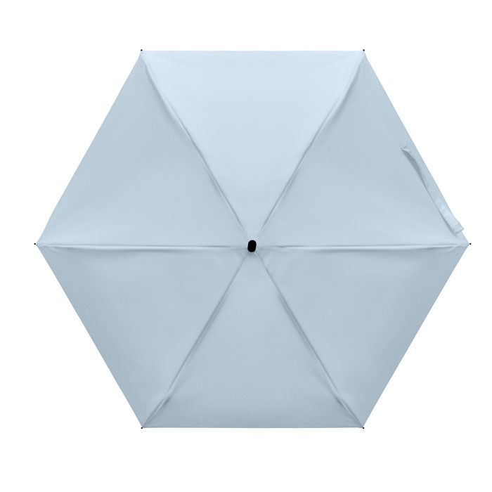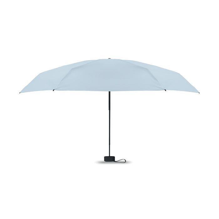 19palcový manuální skládací deštník z 190T pongee v obalu. Kovový a sklolaminátový větruodolný rám, černá pogumovaná rukojeť s popruhem na zápěstí. Kompaktní velikost, ve složeném stavu 17 cm.